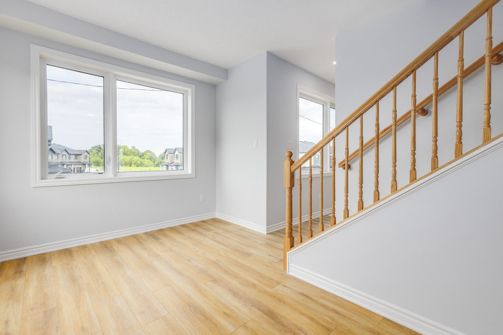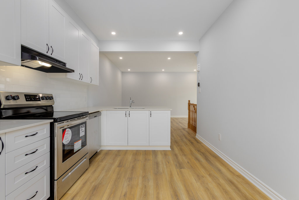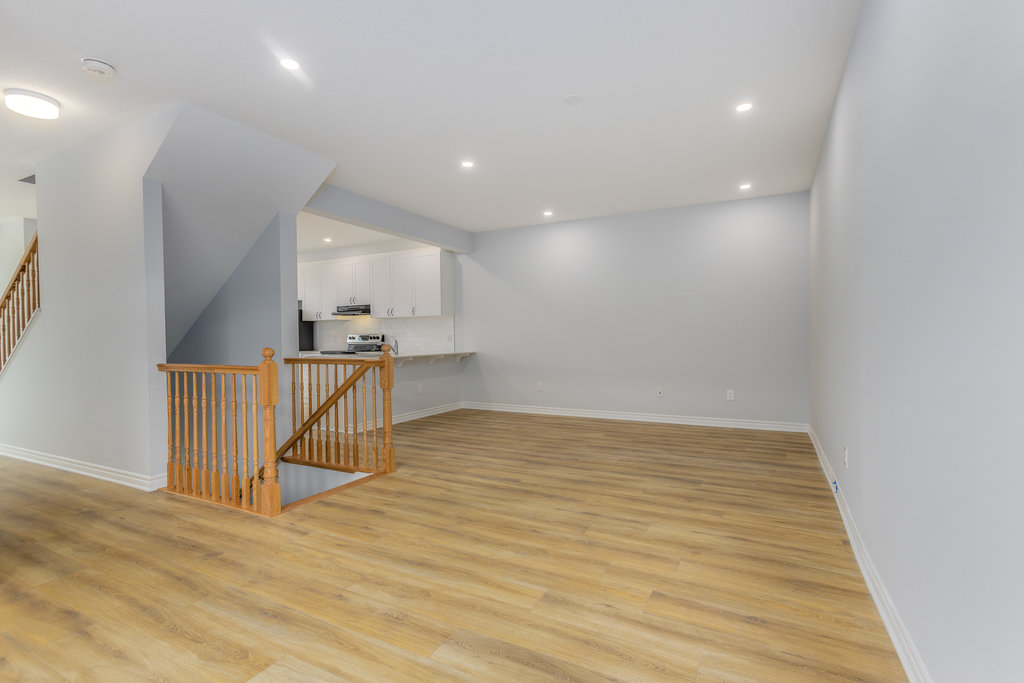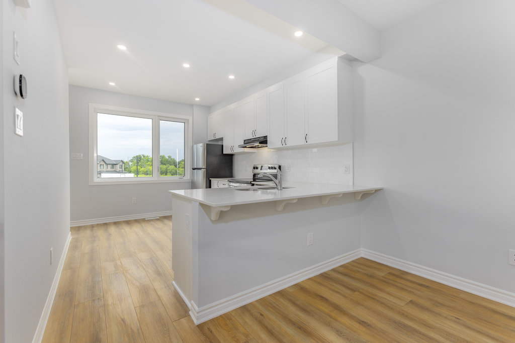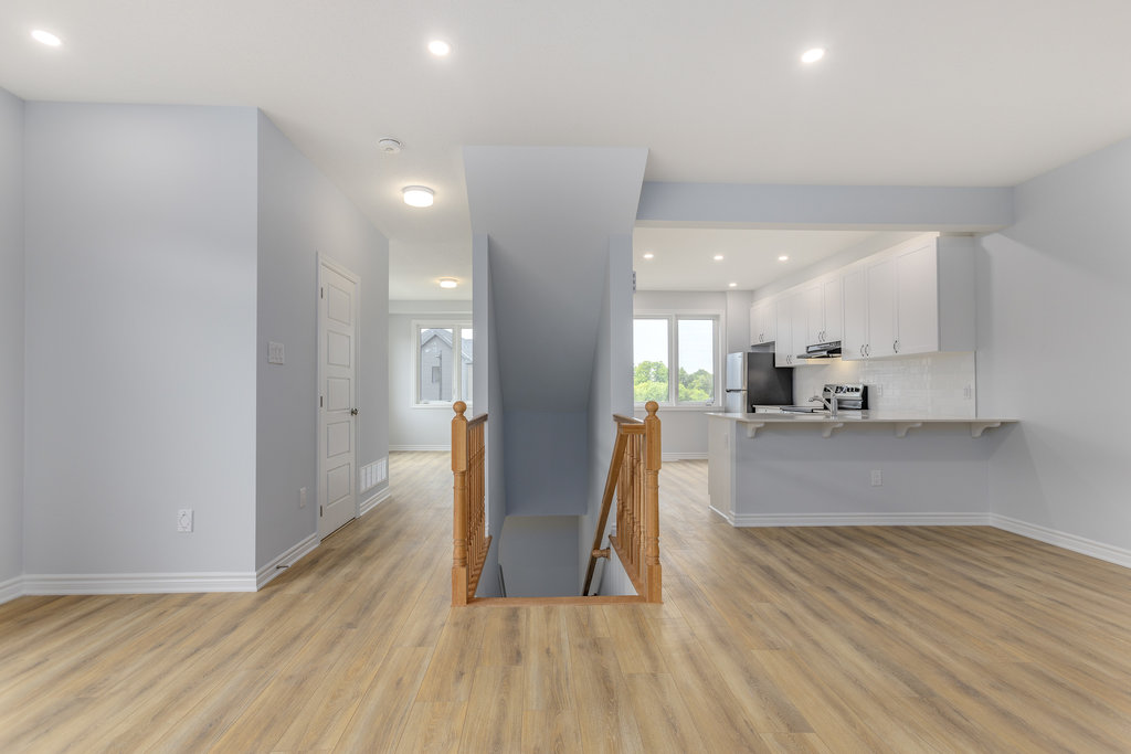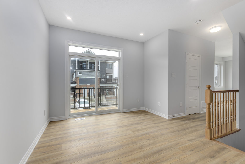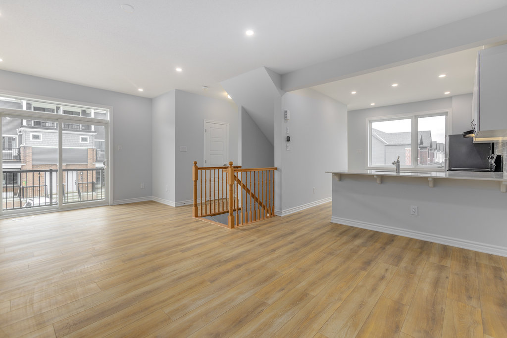The second level offers generous open-concept living, including a beautiful white kitchen with quartz countertops, stainless steel appliances, and a peninsula with seating, all open to the great room. Great room is spacious and a great hosting space plus leads to the private balcony. A separate dining area provides flexibility for use as a dining room, den, or playroom, along with a convenient two-piece bathroom.