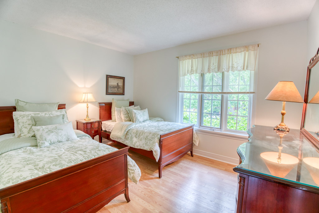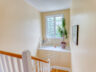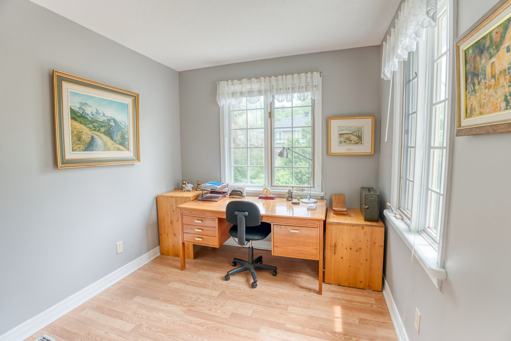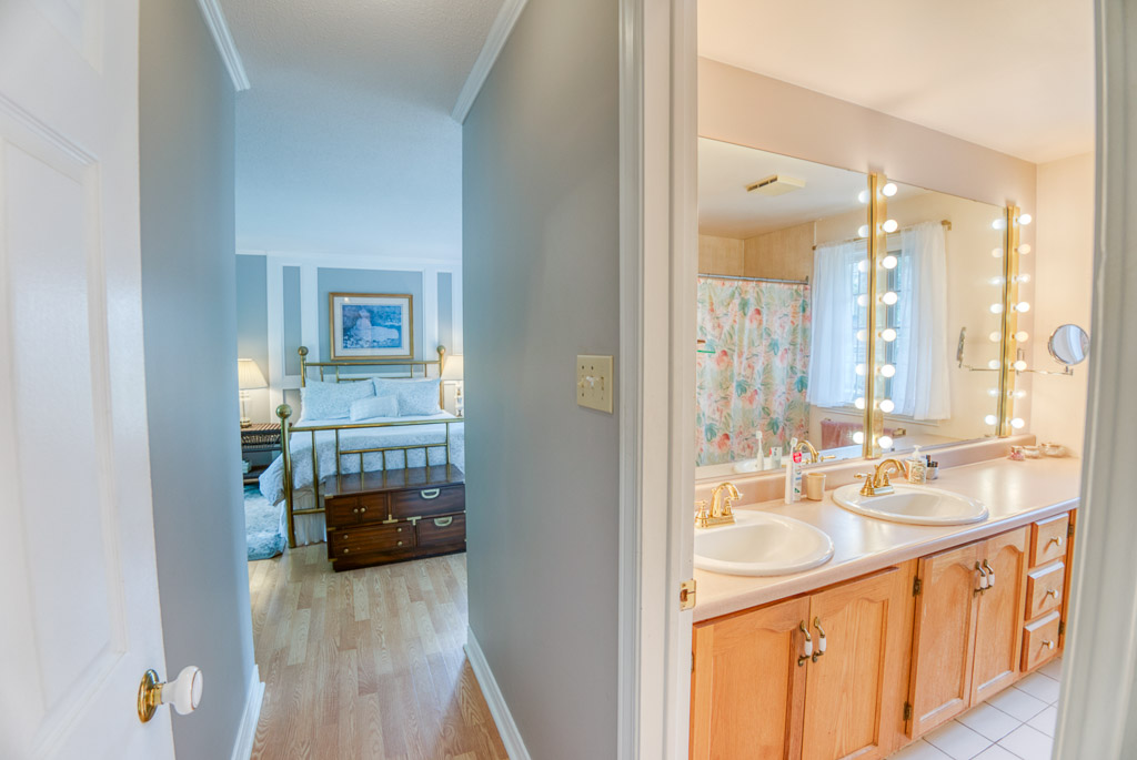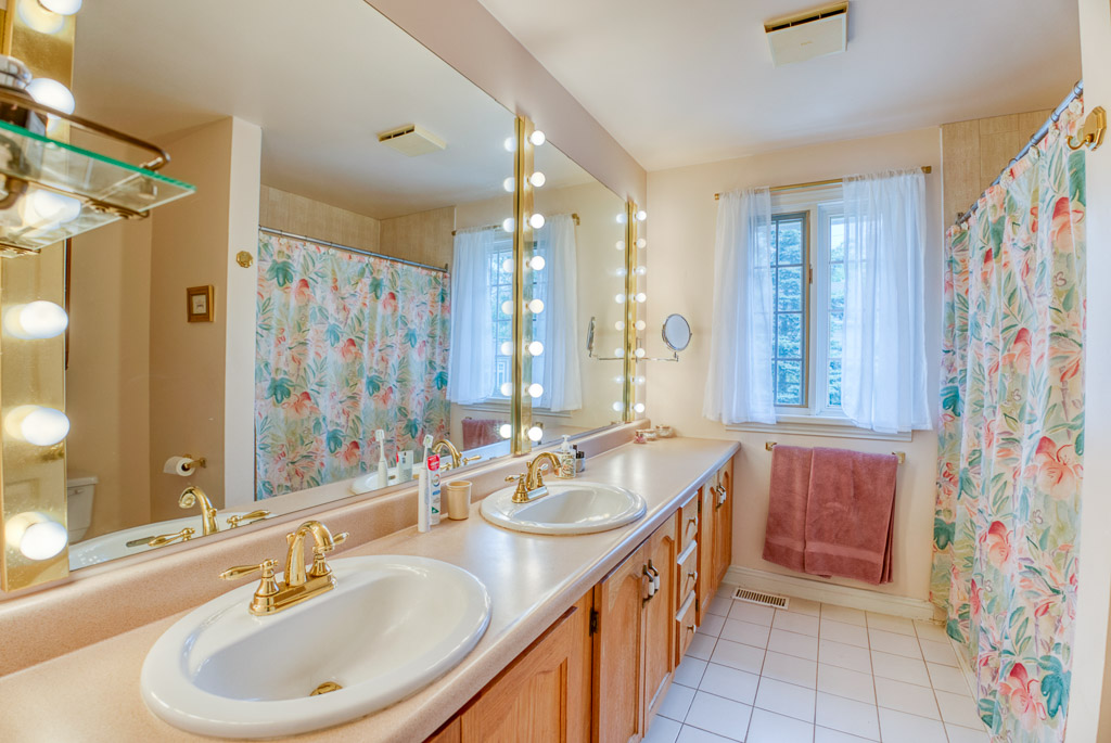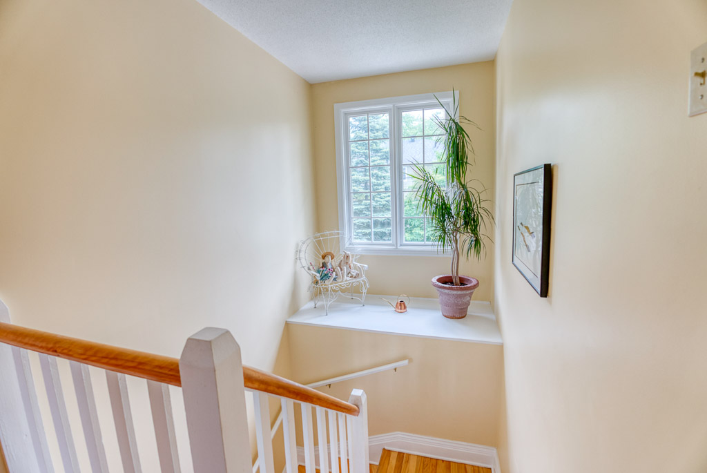 Upstairs, the primary suite is a true retreat, featuring a 5-piece ensuite with double sinks and an oversized bedroom with a sunken den or sitting area – ideal for relaxing. You’ll also find three additional well-sized bedrooms and a spacious 5-piece main bath with separate double sinks for added convenience. The staircase is naturally lit by a beautiful window, and a charming ledge offers the perfect spot for plants or decor.